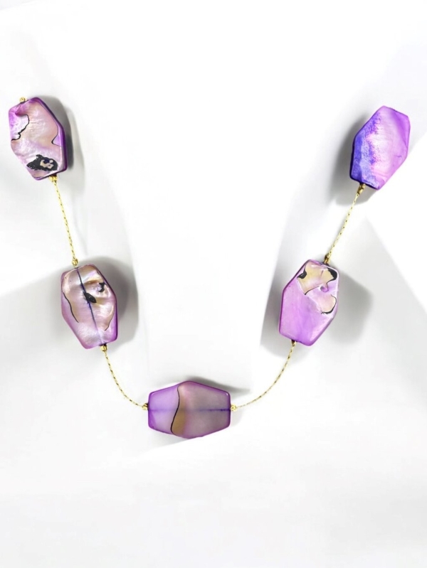 Doğal Taş Sedef Çelik Kolye 49 cm