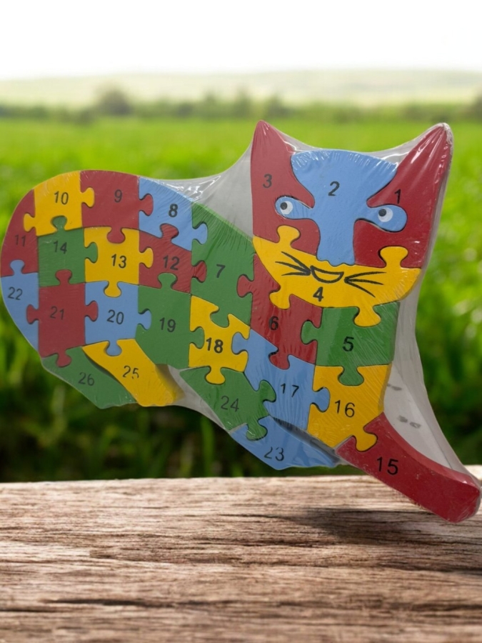 Ahşap Kedi Figürlü Puzzle Yapboz