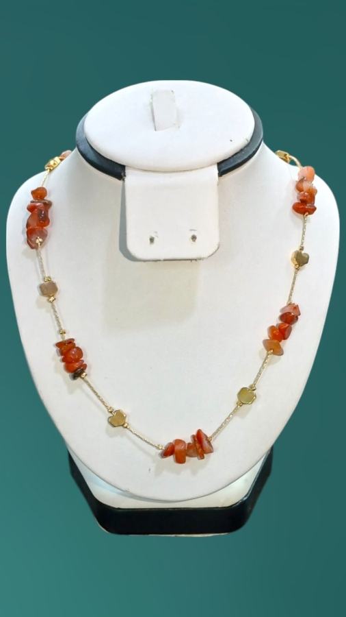 Akik Doğal Taş Çelik Kolye Kırık Taş